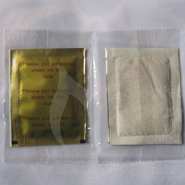 2.也有人认为是足底的汗水出来后起的变化,你可以用正反面贴两只脚,第二天看正面贴的那贴因为足贴的作用而变色变油,而反面贴的那贴,因为没有小孔所以足贴起不了作用还是没有变化的.如果是汗水打湿起的作用的话应该两贴都是湿的.