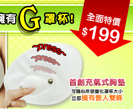 首創充氣式胸墊,可隨心所欲變化罩杯的大小,襯托後G型美胸立即現型。