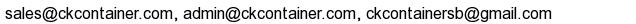 Description : Office Container Company Particular| Company : | CK Container Sdn Bhd | | Address : | No 25-02 Jalan Setia Tropika 1/30, Taman Setia Tropika Johor Bahru , 81200 Johor, Malaysia | | Email : |  | | Website : | http://ckcontainer.cms6.maxtt.com |